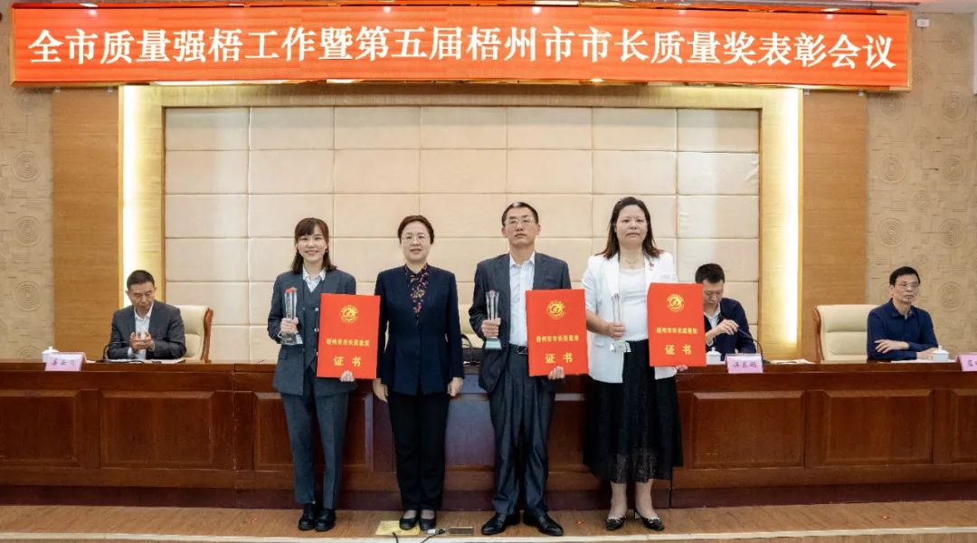 市長質(zhì)量獎是梧州政府設(shè)立的最高質(zhì)量榮譽(yù)!受國務(wù)院特殊津貼專家、集團(tuán)董事長李浪輝委托,副總經(jīng)理唐專通代表集團(tuán)參加會議并登臺領(lǐng)獎。