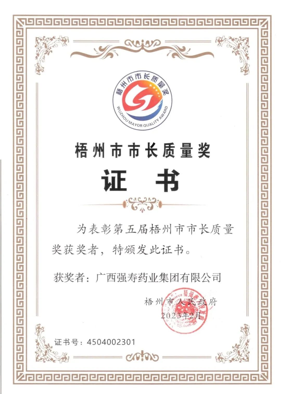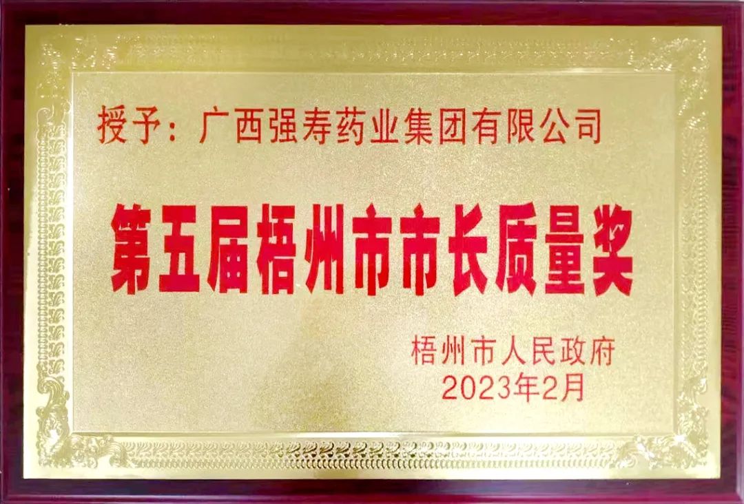 【喜訊】熱烈祝賀強(qiáng)壽集團(tuán)榮獲第五屆梧州市市長質(zhì)量獎